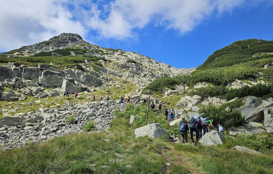 Traseu: Cabana Yastrebets (2.369 m) –> Cabana Musala (2.389 m)–> Refugiul Everest (sau Lacul Înghețat) –>Vârful Musala. Retur pe același traseu.