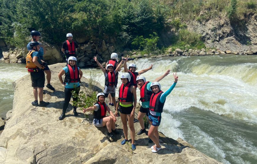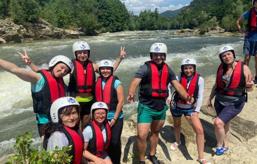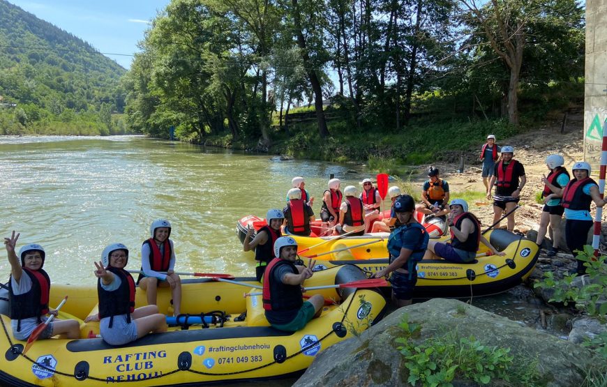 Dupa ce vom ajunge la baza de rafting, ne echipam corespunzator cu costume de neopren si casca, iar apoi ne vom deplasa pe malul raului pentru instructaj, apoi urcam in barci de cate 6-8 persoane si incepem aventura. Fiecare barca va avea instructor specializat si acreditat din partea Rafting Club Nehoiu.
